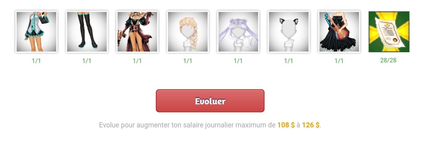| Niveau 3/5 | Cosplayeuse | 6 x 18 SF = 108 SF | |||||