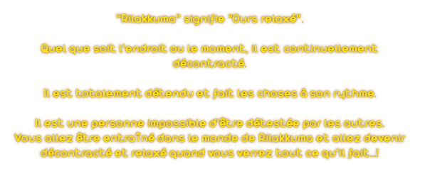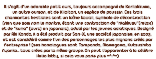 - Rilakkuma, Rilakkuma Store et San-X (ainsi que le twitter et le facebook) sont les sites officiels. Ils sont en japonais, bien entendu, il n'est donc pas forcément facile de s'y orienter. x)