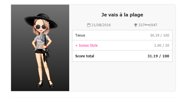 Personnellement j'étais pas très inspirée par ce thème, j'avais rien dans ma garde robe donc je suis plutôt fière de mon score