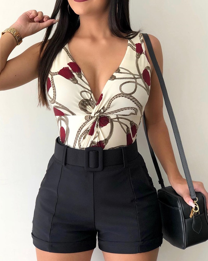 Haut torsadé, short et sac à main